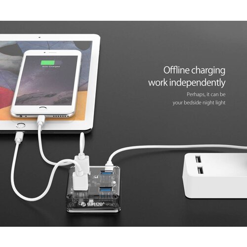 Der transparente Hub mit vier Ports ist mit allen Windows-Versionen, Linux, Mac OS und Chrome OS kompatibel. Es unterstützt Peripheriegeräte wie Tastatur, Maus, Drucker, USB-Stick oder Spieluhren. Das Produkt funktioniert ohne Treiber.