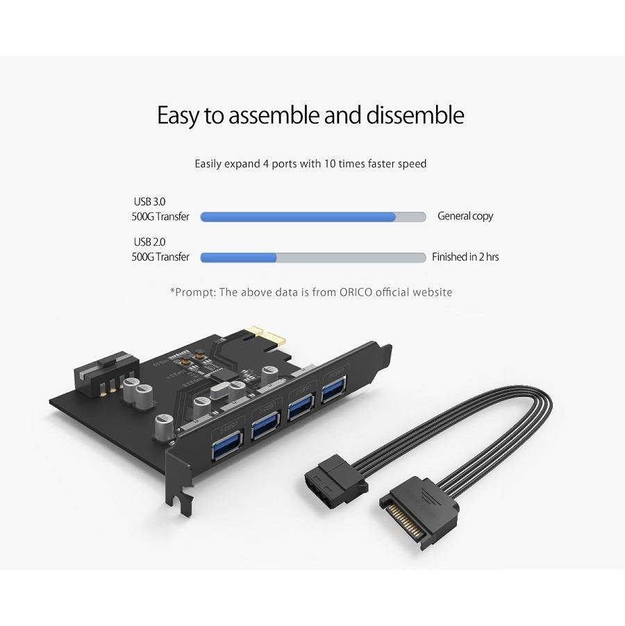 Wil je je computer uitbreiden met USB 3.0 poorten voor je randapparatuur? Dan is deze PCI Express uitbreidingskaart met 4 USB 3.0 poorten van Orico het ideale product voor jou.