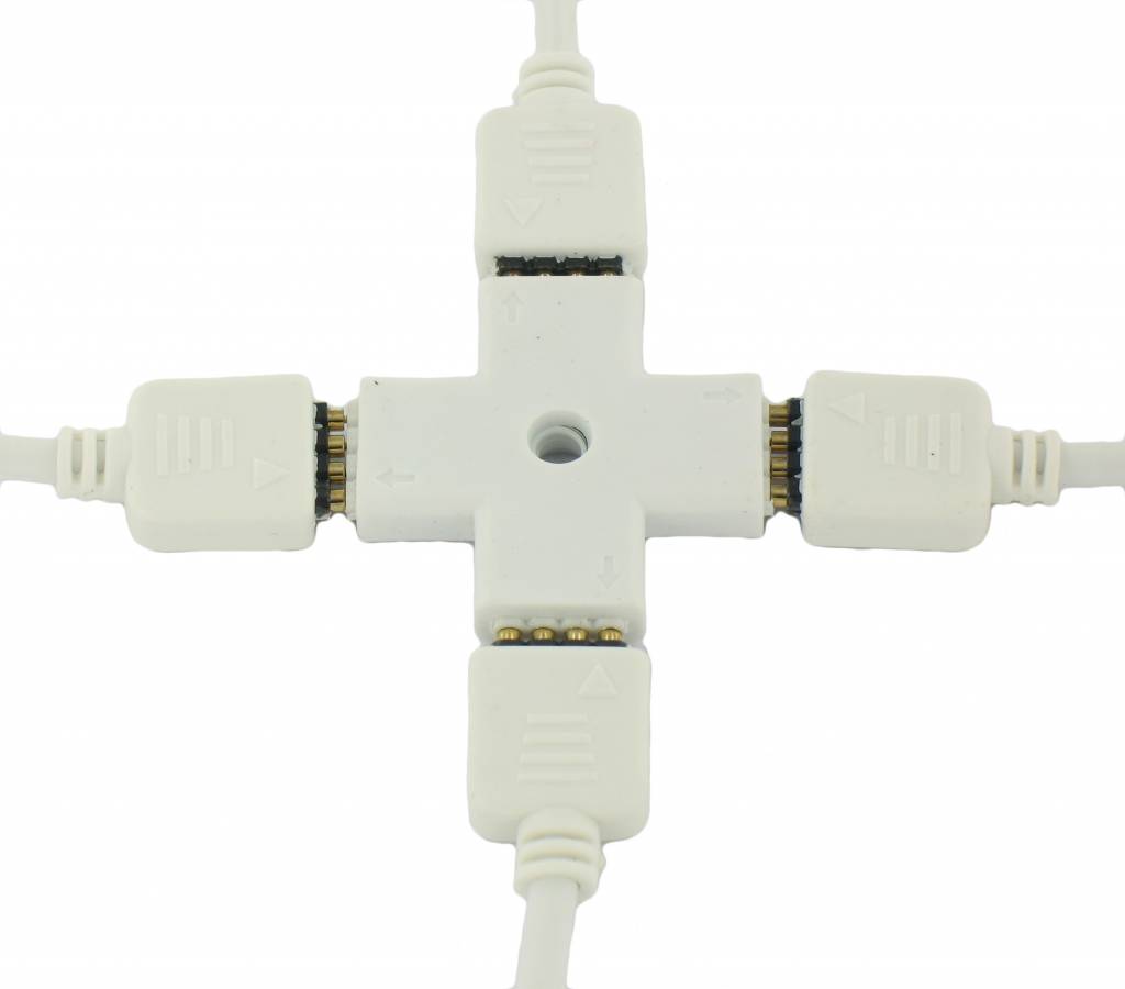 RGB Splitter 4 Hoeken Connector om uw strip te splitsen in een 90 graden hoek.